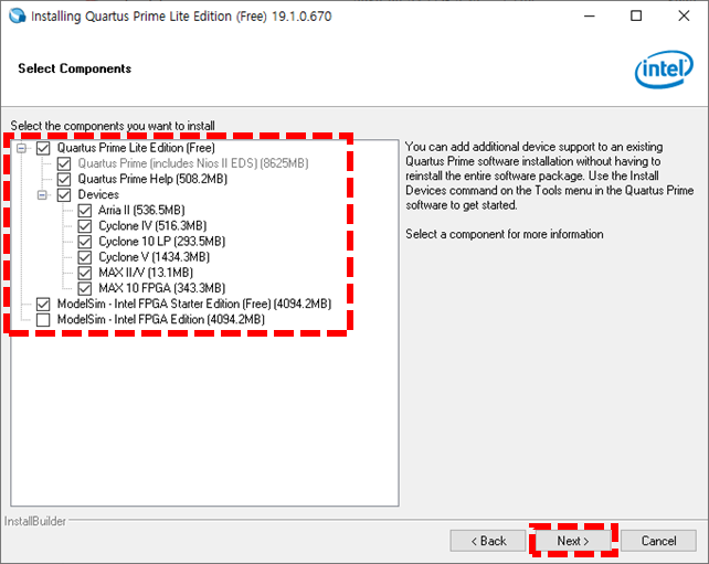 설치할 툴을 선택하는 화면이 나오면 디폴트 상태 그대로 두고 Next 버튼을 클릭한다.